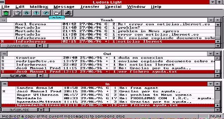 En el buzon IN se almacenaran todos aquellos mensajes que hayamos recibido. Cuando enviemos un mensaje, podremos almacenar una copia, si hemos configurado asi el programa, en el buzon OUT.