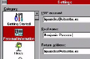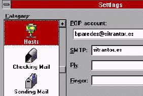 Eudora requiere unos datos basicos para su funcionamiento, como son: la direccion de correo electronico donde nos enviaran los mensajes (=POP account) y el nombre del servidor mediante el cual nos conectamos a internet (=SMTP).